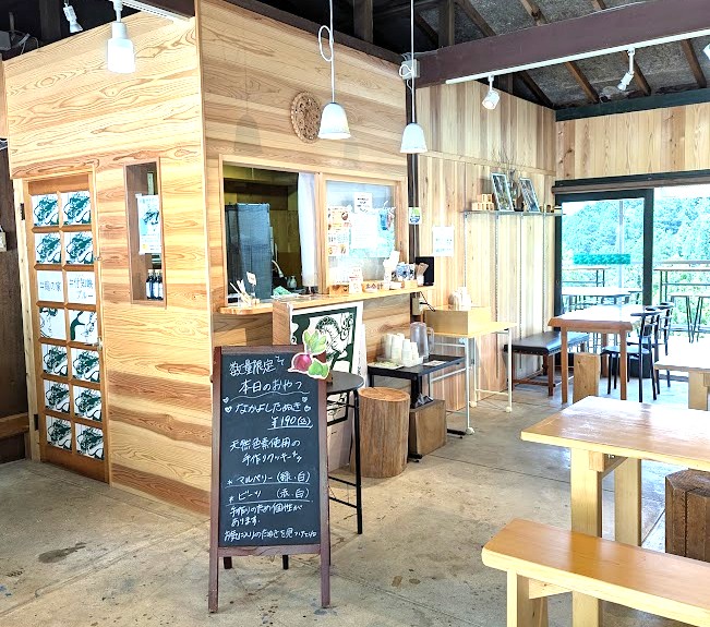 築50年以上たっているドライブインを改装した木のいい香りのする店内は、清々しい山の風が抜けていきます。